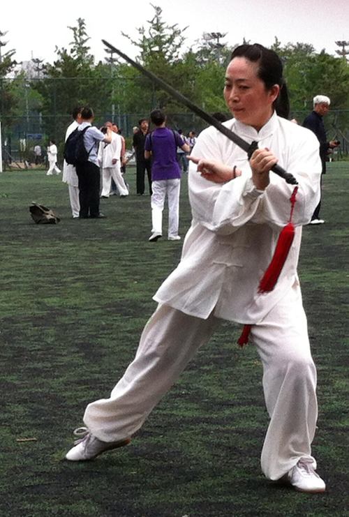 2014年六月一日早晨,在北京体育大学的校园内,涌现许多身着太极服的人们,记者跟随这些手里拿剑、腰间背刀的人们来到体大足球场。在宽广、碧绿的草坪上,来自世界各地及全国的太极拳团体和个人,聚集在此,共享一场初夏时节的太极拳中外交流盛会。
