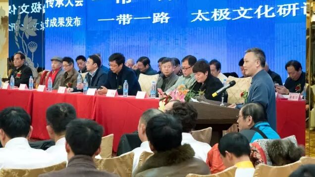 1月7日上午,首先举行了“融入一带一路,中华太极同行”高峰论坛。著名学者余功保先生主持论坛并发表讲话,他指出:文化包括文化体系、文化精神、文化传承,最基本的是人的传承。中国传统文化精神和核心点在太极理法甚至要领中高度体现,本次活动立足文化传承,对太极拳发展具有重要促进作用。与会专家就太极文化融入“一带一路”, 讲好“中国故事”,传播太极精神,加强与沿线沿路各国人民的文化交流与合作,推进中华武学文化与各国文化的包容和谐发展,进行了深刻研讨。霍培林、梅墨生、许紫琳进行了精辟入理激情洋溢的主旨发言,与会代表纷纷献言献策。一致认为,将太极文化融入一带一路,使太极成为世界性语言广泛传播,向世界人民传友谊送健康,具有重要的现实意义和深远的历史意义。会议提出了很多建设性意见,形成了《“融入一带一路,中华太极先行”行动共识》。