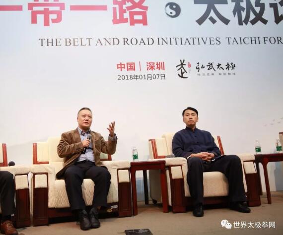 论坛以中、英、法三国语言进行,深入探讨了中国太极理法、太极文化的内涵与境界。著名太极文化学者、世界太极拳网总编余功保,著名青年武术家、弘武太极机构创办人李斌,法国东方文化传播中心主任柯文,清华大学武术教授、博士生导师乔凤杰,深圳职业技术学院外事处处长赵继政参加论坛对话。